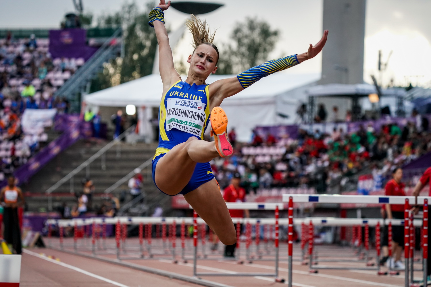 19-річна одеська легкоатлетка Діана МИРОШНІЧЕНКО (тренер — Андрій МИРОШНІЧЕНКО) завоювала бронзу у стрибках в довжину з результатом 6,37 м. Такий же результат показала шведка Айлa Гальберг Хусейн, але за рахунок кращої другої спроби Діана піднялася на третю сходинку п’єдесталу (6,36 проти 6,23).