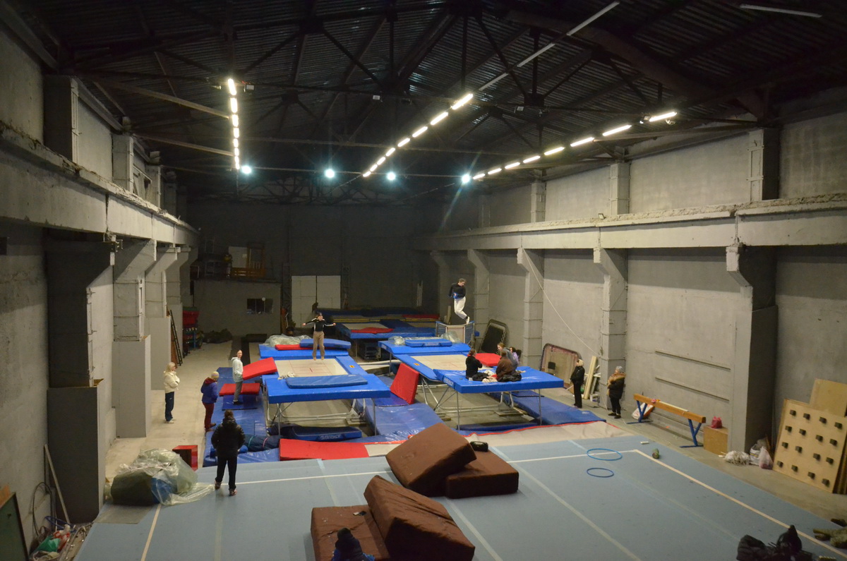 Нова локація стрибків на батуті – ще одне складське приміщення, у відновлення якого вже вкладене не один десяток тисяч гривень, де вже встановлене обладнання і де можна проводити тренувальний процес. Але є серйозні проблеми: з дахом (він тече), з опаленням (його немає). На даному етапі ці проблеми не вирішені, і це ставить під питання тренувальний процес і відповідно розвиток виду спорту як такого.