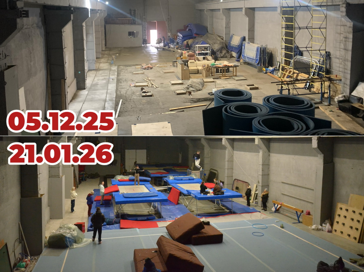 – Це велика допомога, так. У будь-якому разі вона нам допомагає, звісно. Тим більше це приміщення більше, ми можемо не переривати наш тренувальний процес, щоб малюки продовжували тренуватися. У нас тепер є зонування, так скажемо, окремо стоятимуть батути для груп набору, тобто для маленьких діток і, окремо, два батути для проведення зборів, змагань, підготовки спортсменів на чемпіонати України, світу та Європи.