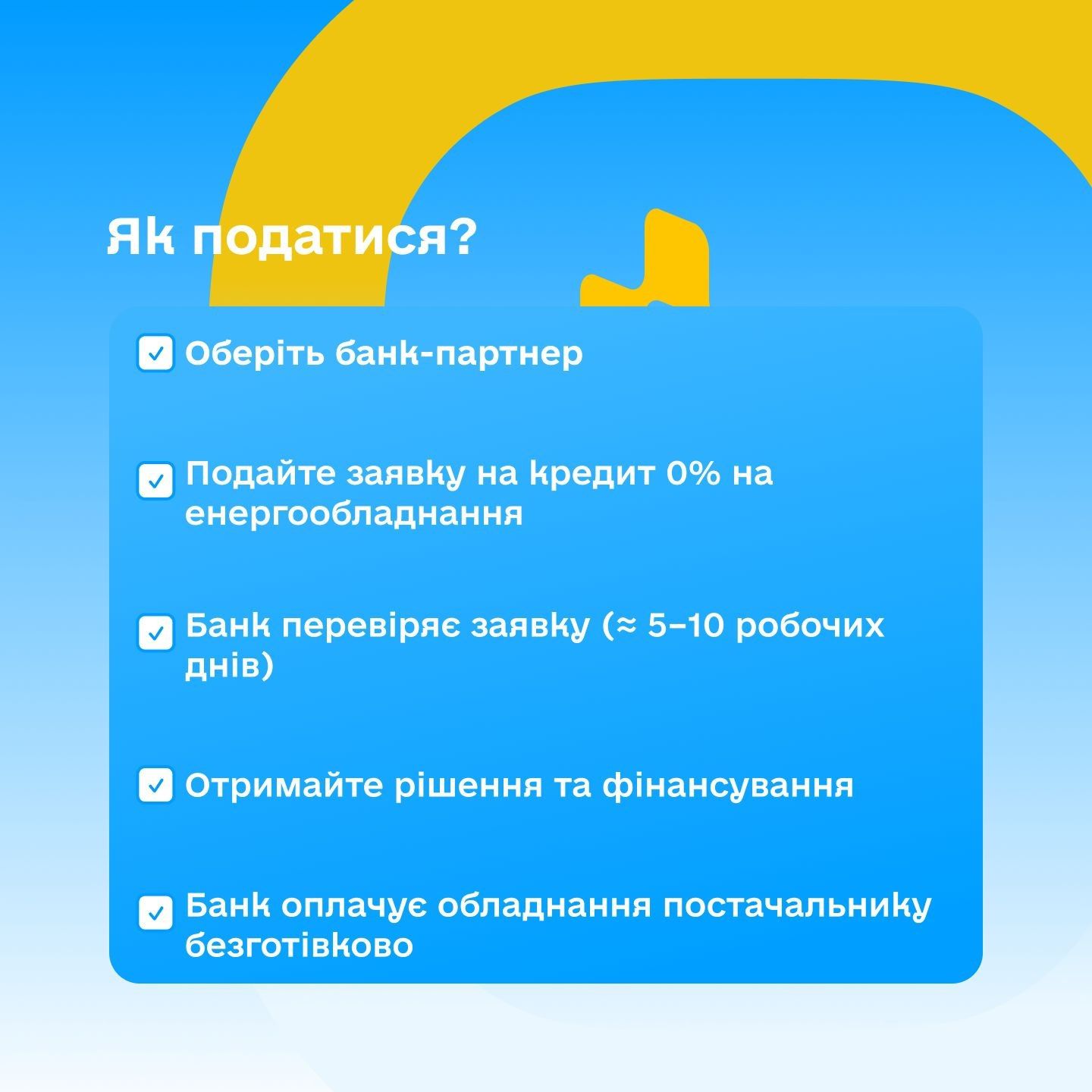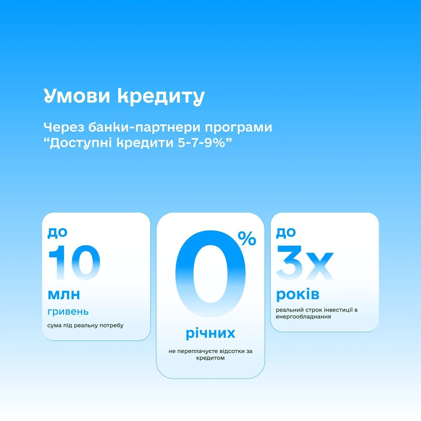 Кредит можна отримати до 3 років і до 10 млн грн для придбання та підключення енергообладнання.