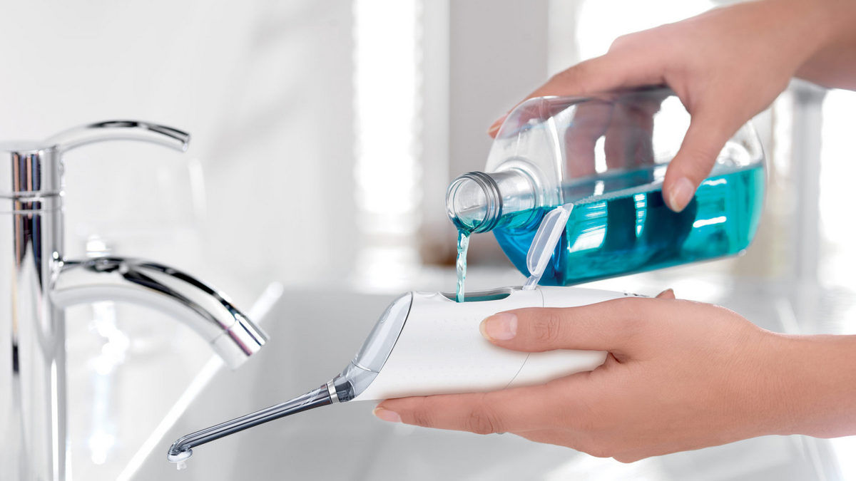 - Глубокая очистка межзубных промежутков, которая защищает от кариеса и неприятного запаха. Струя воды достает туда, куда не проходит щетина.