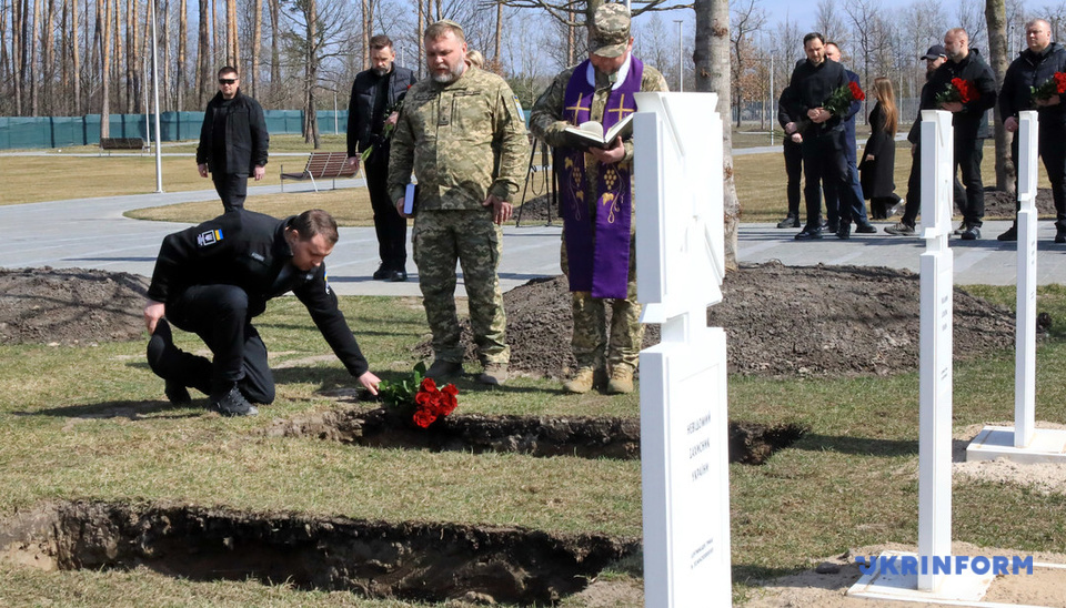 Як повідомляє кореспондент Укрінформу, поховання відбулися в присутності глави Офісу Президента Кирила Буданова, заступників керівника ОПУ Віктора Микити та Ірини Верещук, представників ОВА.