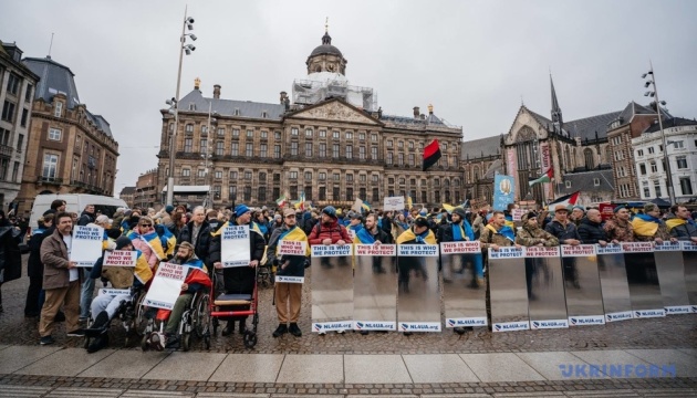 “Марш Солідарності, організований рухом Maidan to Dam проходить в Амстердамі вчетверте. І вже вдруге до цього приєднались українські захисники, що перебувають на реабілітації в Нідерландах. Цього разу, крім звичайних плакатів, вони несли дзеркальні банери з написом "This is who we protect", аби європейці могли відчути, що війна Росії в Україні стосується і їх особисто. Особливо зараз, коли всі в Нідерландах отримали від уряду попередження про формування тривожної валізки, а російські дрони регулярно залітають на територію Євросоюзу”, — зазначила в коментарі Укрінформу Катерина Габак, член ради правління фундації “Українська діаспора” та лідерка руху Maidan to Dam.