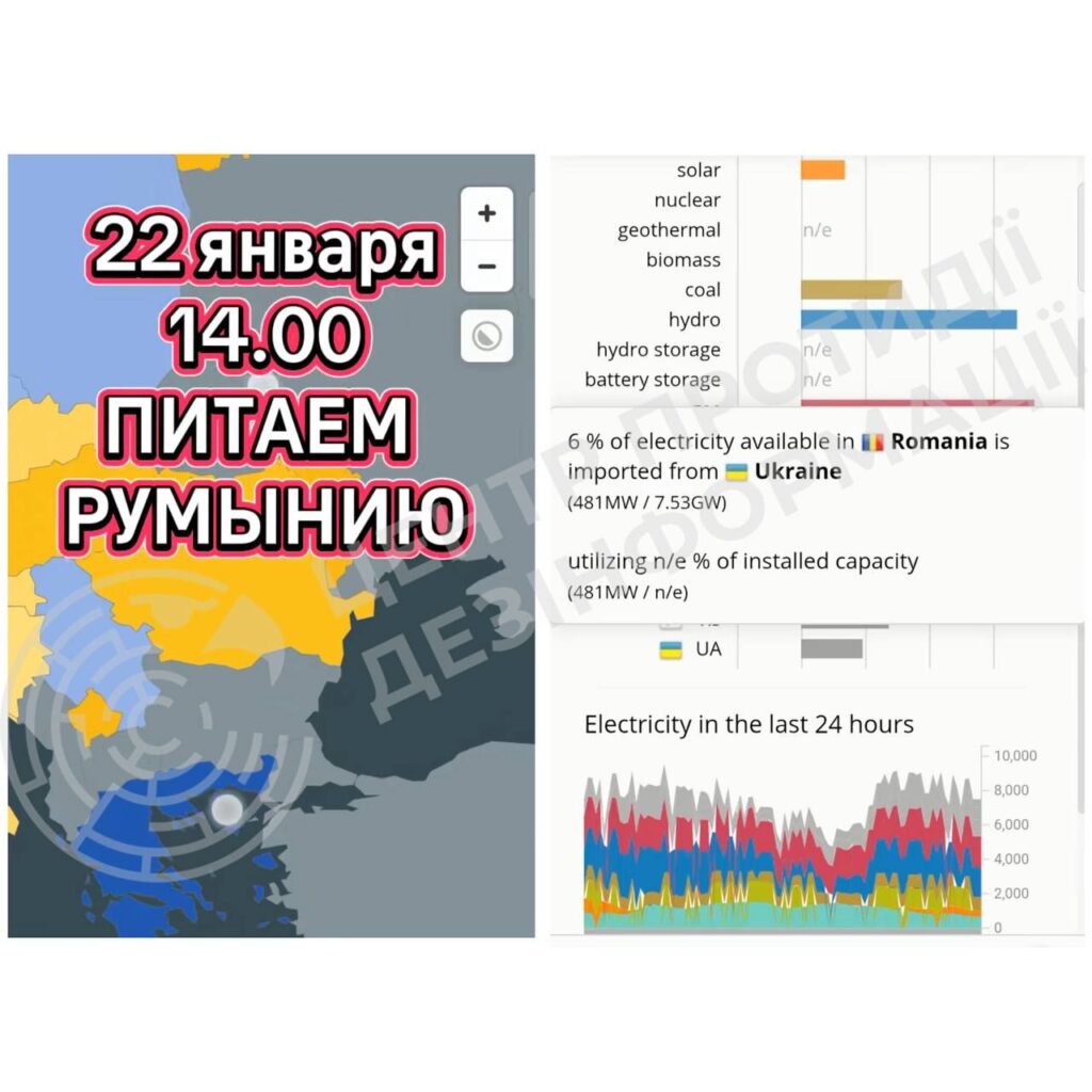Фактчекери Центру протидії дезінформації продовжують фіксувати активну дезінформаційну кампанію про “продаж Україною електроенергії за кордон” під час масованих відключень електропостачання. Мережею “гуляють” відео з картами та графіками, які нібито “доводять“, що Україна експортує електроенергію до Європи, поки українці сидять без світла. Що це таке та чи реальні вони?