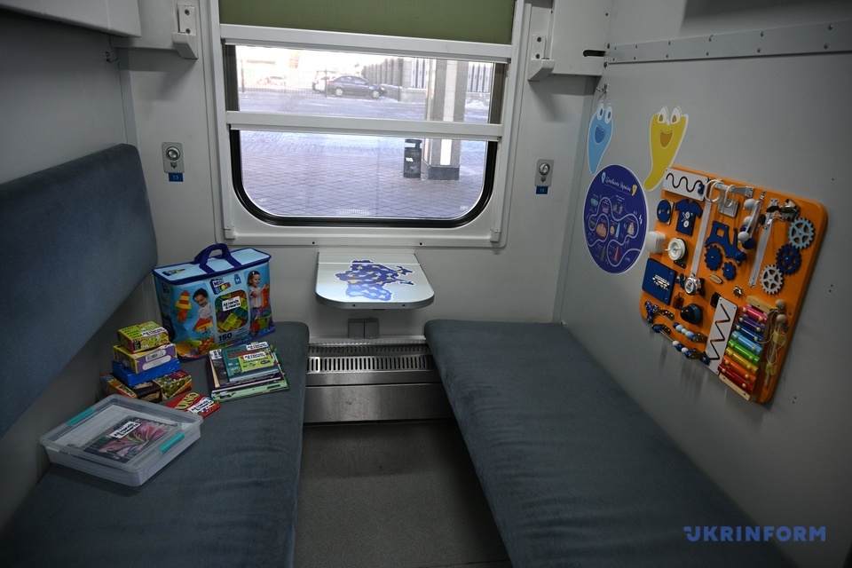 У вагонах передбачені дитячі купе з ігровими наборами, книжками, освітніми матеріалами та мультфільм-зоною і окремі зони для перебування з домашніми тваринами.